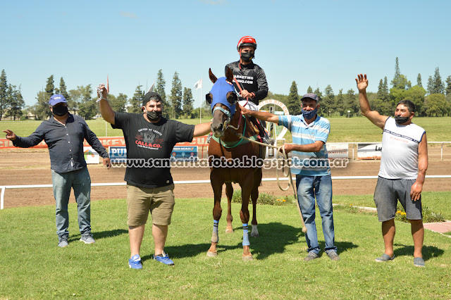 Carrera ganada por 3 cpos, del 2° al 3° 1/2 cpo. Jockey Facundo Quinteros.